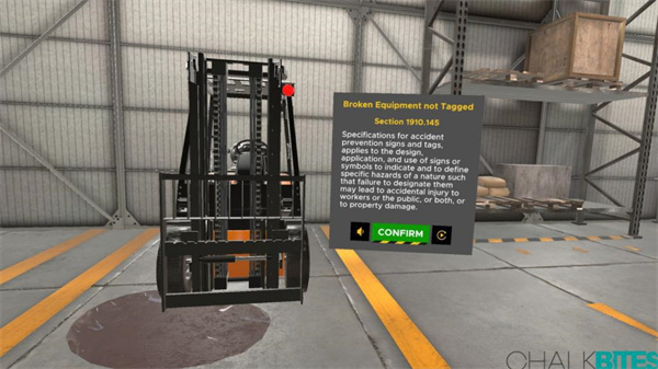 简介:练习识别VR中常见的职业安全与健康管理(OSHA)违规行为。详细了解仓库环境中的每个违规。OSHA表示,仓储行业的致命伤害率高于其他行业。了解风险,并始终将安全作为您运营的中心。
