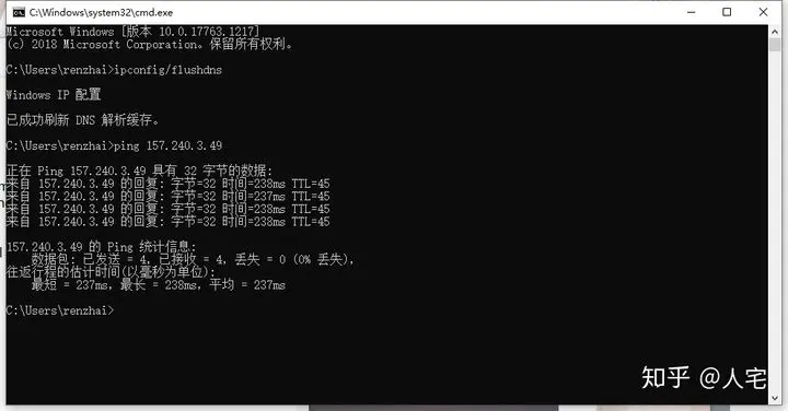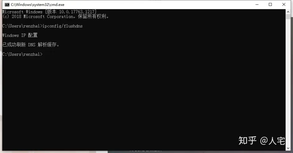 运行命令ipconfig/flushdns刷新DNS解析缓存: