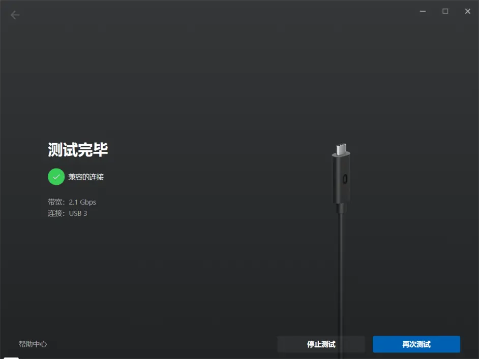 到这个界面,用USB线连接到你的quest2。可以USB测试。测速你的USB线的速度。