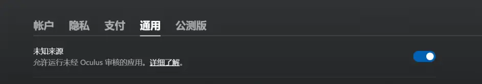 找到设置-通用,打开未知来源。这样才能打开非oculus商店的应用。